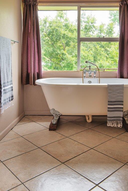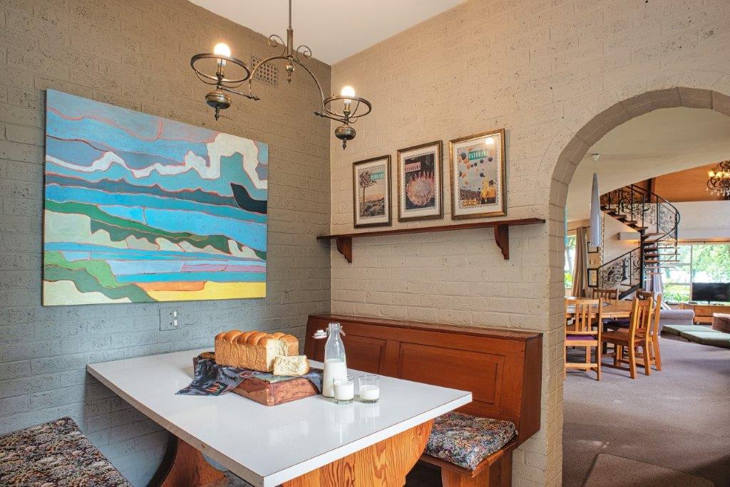Back into the kitchen for breakfast in the morning and you will find a country kitchen-style layout with tons of cupboard space and fully fitted with gas and electrical stoves, double space for fridge and freezer, as well as more than enough sockets for microwave oven, toaster and kettle. Cosy up for breakfast in the breakfast nook or enjoy a tasty spread in the dining area. The separate scullery and laundry rooms can accommodate your dishwasher and washing machine for washing up that’s away from family and guest entertainment.